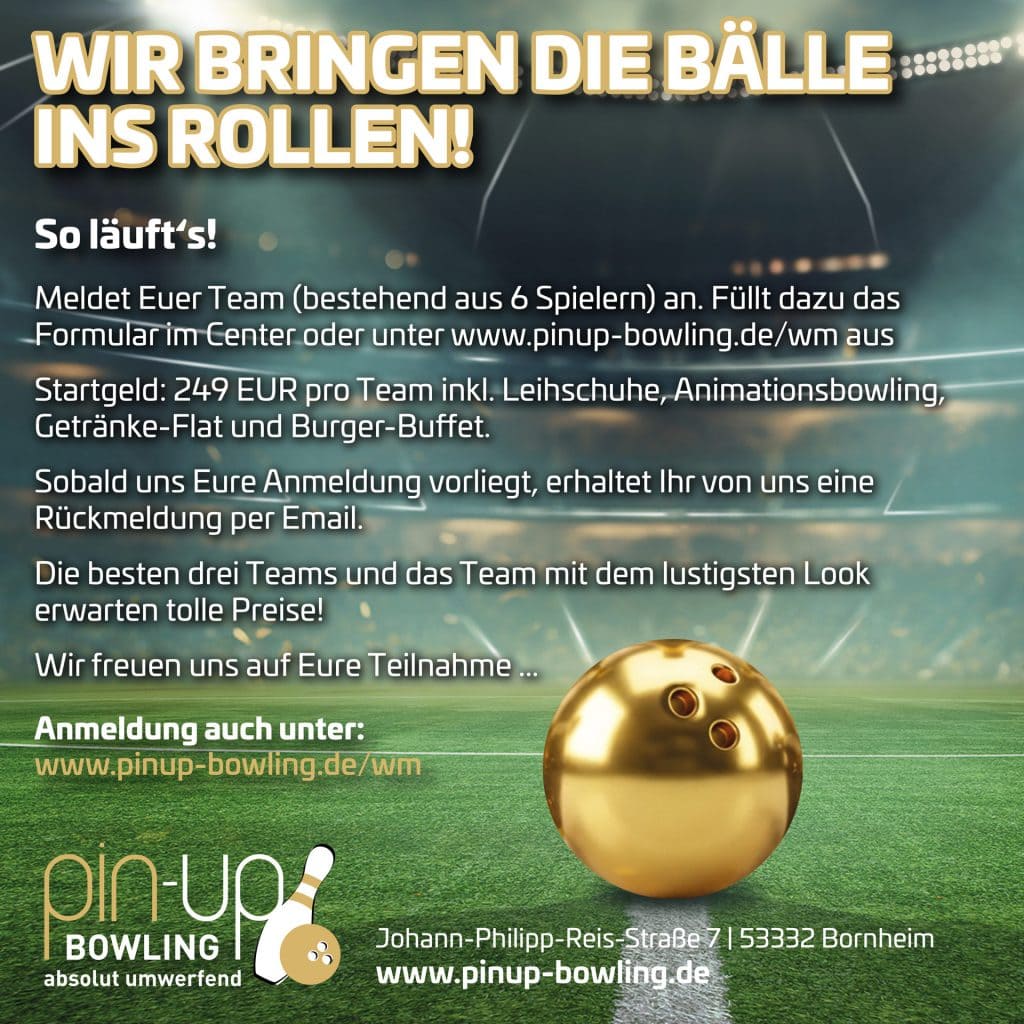 Hier können Sie was erleben: Im pin-up Bowlingcenter in Bornheim erwartet Sie auf 2.100 qm ein abwechslungsreiches Programm und eine einzigartige Atmosphäre. Und vor allem eine der modernsten Bowlinganlagen Deutschlands.